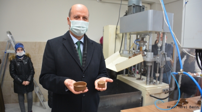 Şuhut Belediye Başkanı recep bozkurt ve Şuhut Kaymakamı Erkan Kaçmaz el ele vererek istihdam projeleri üretmeye devam ediyorlar.Hayata geçirilen son proje ise Şuhut Çömlek Atölyesi.Eski yatılı Kur’an-ı Kerim kursunda hayata geçirilen Şuhut çömlek atölyesinde il etapta yaklaşık 20 bayanın istihdam edilmesi planlanıyor.Makina kurulumu tamamlanan atölyeyi Şuhut Kaymakamı Erkan Kaçmaz,Şuhut Belediye Başkanı Recep Bozkurt,Şuhut İlçe Milli Eğitim Müdürü Hüseyin Eroğlu ve çok sayıda bayan inceledi.İlk deneme ürününü kolları sıvayıp tezgahın başına geçen İlçe Kaymakamı Erkan Kaçmaz yaptı.Şuhut Belediye Başkanı Recep Bozkurt yaptığı açıklamada”Tescilli Şuhut Keşkeğinin Çömleği Artık Şuhut’ta Üretilecek.Bu projenin hayata geçirilmesinde emeği büyük olan Şuhut Kaymakamımız Erkan Kaçmaz’a teşekkür ediyorum.Kısa sürede İşkur vasıtasıyla kursiyer hanım kardeşlerimiz burada çalışmaya başlayacak.Kadın Kültür evimizinde bu projenin hayata geçmesinde katkısı sonsuz.Şimdiden Şuhut’umuza hayırlı uğurlu olsun”dedi.