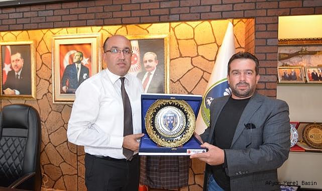 Toplumsal Uyuşturucuyla Mücadele Derneği Sandıklı İlçe Başkanı Mehmet Yıkıldım, Belediye Başkanımız Dr. Mustafa Çöl’ü ziyaret ederek, kendilerine verdikleri desteklerden dolayı plaket takdim ettiler.
