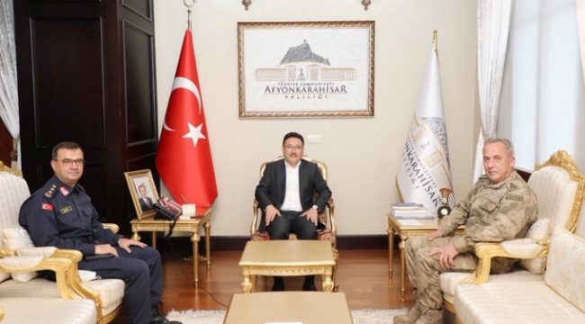 Jandarma Genel Komutanlığı Denetleme ve Değerlendirme Başkanı Tuğgeneral Semih Okyar, Vali Gökmen Çiçek’i makamında ziyaret etti. Ziyarette Afyonkarahisar İl Jandarma Komutanı J.Albay Yılmaz Kırgel de hazır bulundu.