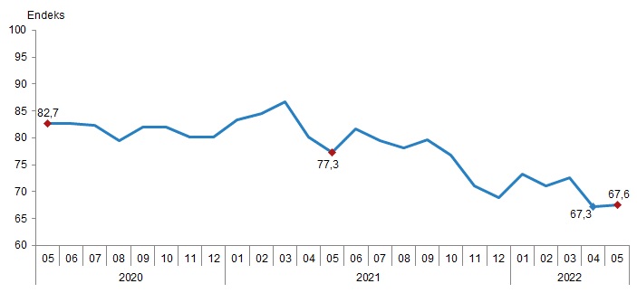 Mevsim etkilerinden arındırılmış tüketici güven endeksi, Mayıs 2022