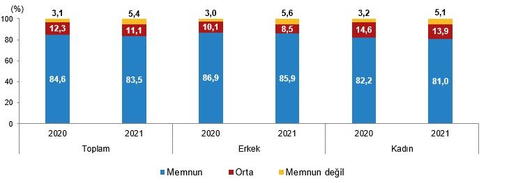 Kaynak: TÜİK, Yaşam Memnuniyeti Araştırması, 2021