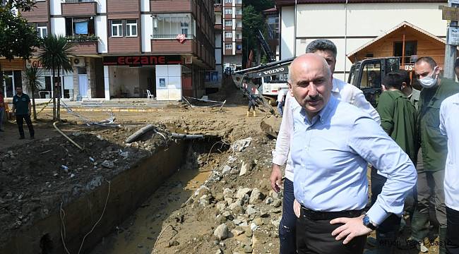 Rize’nin Güneysu ilçesinde selden hasar gören bölgede incelemelerde bulunan Bakan Karaismailoğlu, sel ve heyelan sonrasında yapılan çalışmaları değerlendirdi.