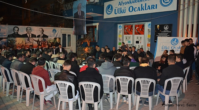 Merhum Alparslan Türkeş’in ölümünün 25. yıldönümü ve Ülkücü Şehitleri anma programı öncesi Afyonkarahisar Ülkü Ocakları tarafından iftar yemeği düzenlendi. Yemeğe MHP İl Başkanı Mehmet Kocacan, MHP Merkez İlçe Başkanı Fevzi Kartal ve yönetimi, Ülkü Ocakları İl Başkanı Oğuz Kağan Diler ve yönetimi, Kamu Sen’e bağlı sendika başkanları ile birlikte çok sayıda ülkücü katıldı.