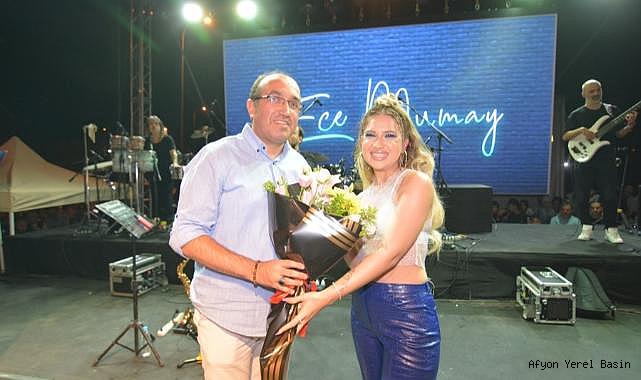 Sandıklı Belediyemiz tarafından geleneksel olarak düzenlenen “Sandıklı Termal Turizm Festivali” nin 4. Gününde ünlü sanatçı ECE MUMAY sahne alarak, birbirinden güzel şarkılarını siz kıymetli hemşeherilerimiz için söyledi.12 Ağustos Cumartesi günü Millet Bahçesinde düzenlenen program kapsamında; ilk olarak kısa adı YTD olan Yurtdışı Türkler ve Akraba Topluluklar Başkanlığı tarafından bütün yurtta organize edilen “Rafadan Tayfa” çocuk gösterisi sahne aldı.Çocuklarımız tarafından ilgiyle takip edilen gösterilerinin akabinde, yurt dışında ikamet eden kardeşimiz Dj Akif Andal tarafından bir sahne performansı sergilendi. Dj Akif Andal’dan sonra, Sahne Showları denince ilk akla gelen isimlerden birisi olan Doğukan Alsay tarafından sahne performansı vatandaşlarımız tarafından ilgiyle takip edilerek, kendisinin ritmik şarkılarına hep bir ağızdan eşlik ettiler.Son olarak gecenin assolisti Ece Mumay ve orkestrası sahne alarak Millet Bahçemizde bulunan festival alanımızı dolduran kalabalığa unutulmaz bir konser verdi. Sandıklı Belediye Başkanımız Dr. Mustafa Çöl tarafından ilçemize hoşgeldiniz diyerek karşılanan Ece Mumay’a çiçek ve plaketini kendileri takdim ederken, bizleri festivalde yalnız bırakmadıkları için teşekkür ettiler.Ece Mumay’ın sahnesinde kendisine bir sürpriz yapılarak ilçemizde çocuklar Ece Mumay’ın doğum gününü kutladılar. Ece Mumay sürpriz doğum günü için duygulandığını ve mutlu olduğunu belirtirken, 25. Yaşına Sandıklımızdaki bu güzel kalabalığın önünde girmekten dolayı duyduğu memnuniyeti ifade ettiler. Ayrıca ilçemizdeki SMA Hastası Azra kızımıza bir destek olması münasebetiyle 20 bin TL bağışta bulunan Ece Mumay, kızımızın en kısa sürede iyileşmesini de temenni ettiler.
