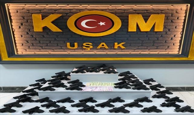 Uşak'ta durdurulan bir otomobilde yapılan aramada 63 ruhsatsız tabanca ele geçirildi, sürücü tutuklandı.Uşak İl Emniyet Müdürlüğüne bağlı ekipler, Ankara-İzmir kara yolundaki polis denetim noktasında, şüphe üzerine bir otomobili durdurdu.Araçta yapılan aramada 63 ruhsatsız tabanca ile bir miktar para ele geçirildi.Gözaltına alınan sürücü O.G, işlemlerinin ardından sevk edildiği adliyede çıkarıldığı nöbetçi hakimlikçe tutuklandı.