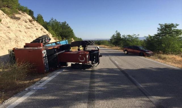 Uşak'ta traktörle otomobilin çarpıştığı kazada 2 kişi yaralandı.Alınan bilgiye göre, H.K. yönetimindeki 64 ABS 393 plakalı otomobil, merkeze bağlı İlyaslı köyü yakınlarında, karşı yönden gelen M.K. kontrolündeki 64 NB 548 plakalı traktörle çarpıştı.Çarpışmanın etkisiyle traktör yola devrildi.İhbar üzerine kaza yerine 112 Acil Sağlık ve jandarma ekipleri sevk edildi.Kazada yaralanan sürücüler, ambulansla Uşak Eğitim ve Araştırma Hastanesine kaldırıldı.Yaralıların sağlık durumlarının iyi olduğu öğrenildi.
