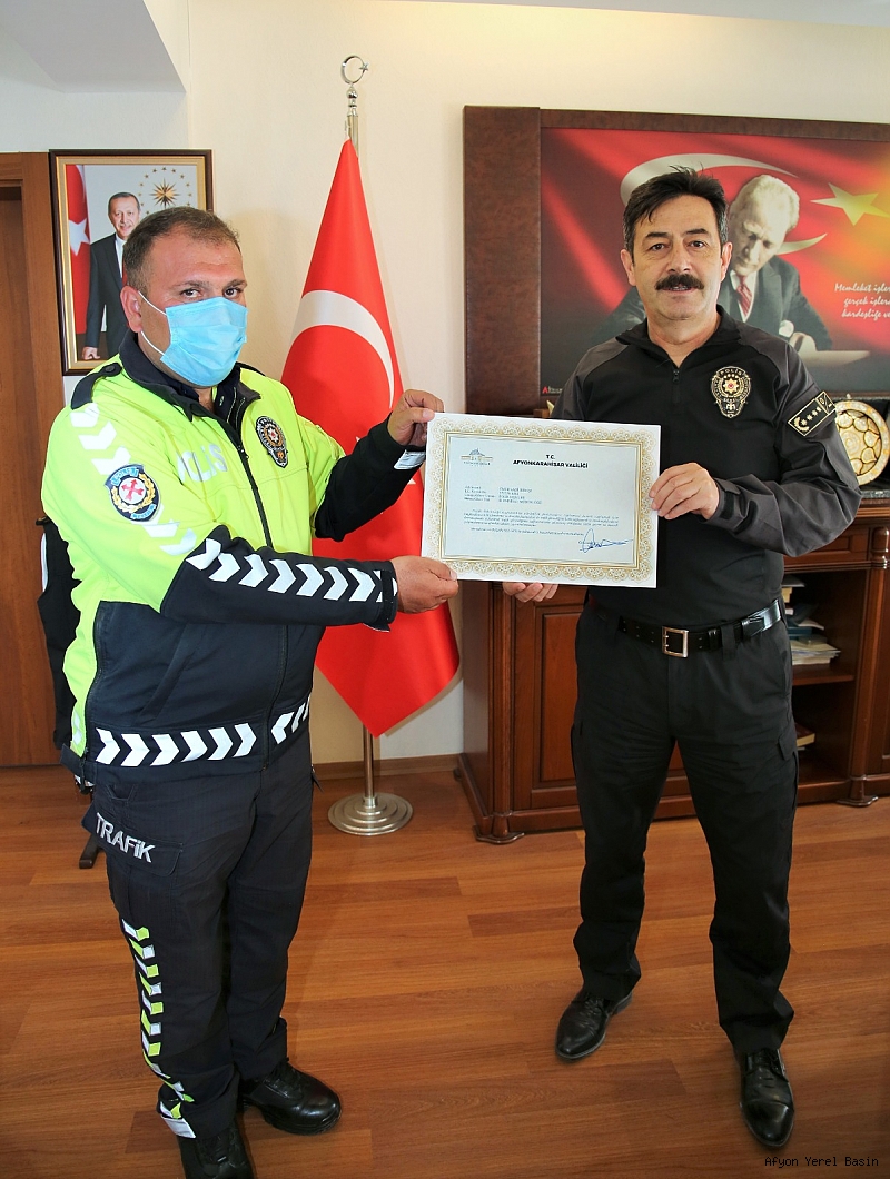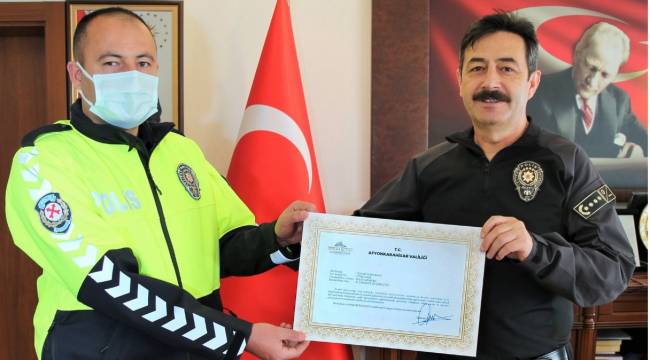 Her yıl Mayıs ayının ilk haftasında kutlanan “Trafik Haftası” dolayısıyla Vali Gökmen Çiçek Polis trafik ekiplerinde görev yapan personeli temsilen 2 görevliyi başarı belgesiyle ödüllendirdi.