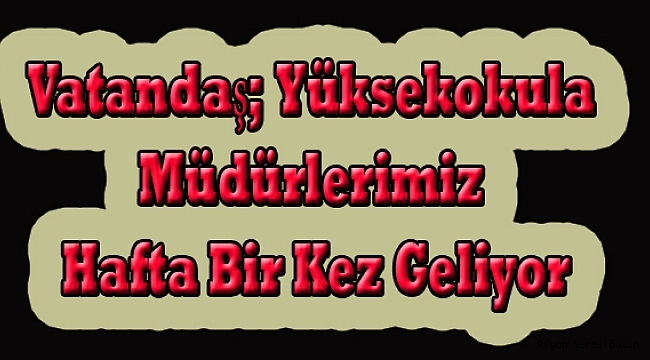 Dinar ilçemize 4 yıllık Uygulamalı Bilimler Yüksek Okulunun açılmasını halkımız sevinçle karşılamış ve ilçemize katkılarının çok fazla olacağını ifade etmişlerdi. Ancak araştırmalarımız neticesinde alınan bilgilere göre 4 Yıllık Uygulamalı Bilimler Yüksekokulu Müdürü ve İki Yıllık Meslek Yüksek Okulu Müdürü Dinar İlçemize haftada bir kez pazartesi günü 10:00 ile 11:00 saatleri arasında gelip 15:00 ile 16:00 saatleri arasında tekrar gittiği iddia edildi.