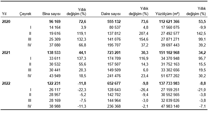 Yapı ruhsatı istatistikleri, 2020-2022