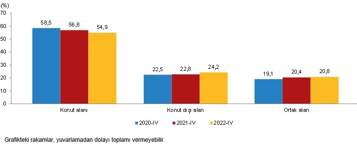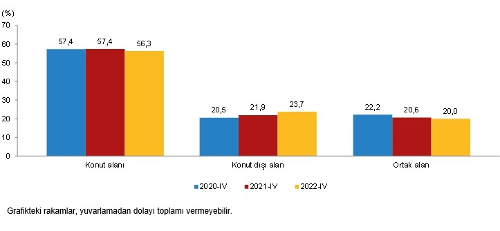 Yapı kullanma izin belgesine göre konut, konut dışı ve ortak alanların yüzölçümü payları, IV. Çeyrek, 2020-2022