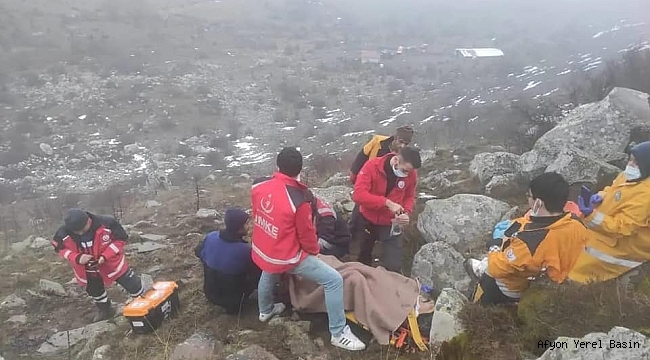 Sinanpaşa Tınaztepe kırsalında,yüksek rakımlı ve engebeli bir arazide, bir avcının yaralı olduğu ihbarı üzerine harekete geçen ekiplerimiz arazi tipi araçlarla, yağmurlu ve zorlu hava şartlarına rağmen yaralıya ulaşmış ve ilk medikal tedavisi yapılarak hastanın stabilizasyonu sağlandıktan sonra 112 ekibiyle birlikte bölgeden taşınmıştır.