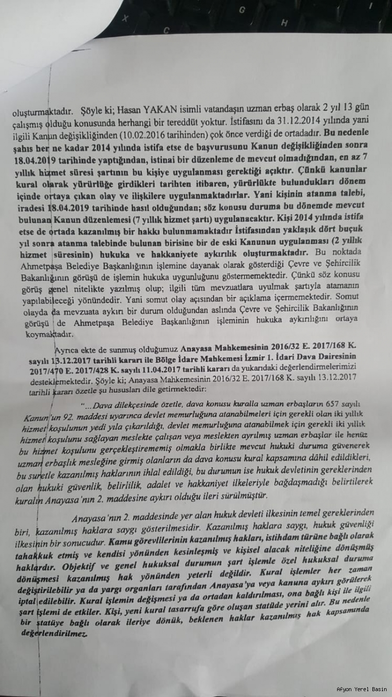 Ahmetpaşa Belediye Başkanlığının yapmış olduğu işlemin hukuka aykırılığı ortaya konulmuş olsada, İddialara göre Memur olarak 8 ay gibi bir süre belediye'de Memur olarak çalışan Hasan Yakan'ın aldığı Devlet Memuru maaşı ile KAMU zarara uğratılmıştır. Kamuyu zarara uğratan Belediye Başkanı eyüp yakan hakkında, Afyonkarahisar Valiliği ve Cumhuriyet Başsavcılığını yasal işlem başlatılması için göreve davet ediyoruz.