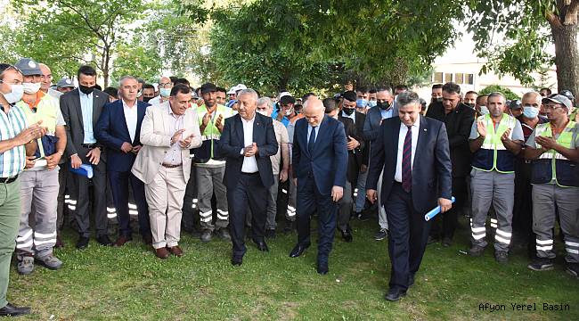 Göreve geldiği ilk günlerde mesai ücretleriyle ilgili yaptığı açıklamanın farklı yorumlandığını söyleyen Zeybek Başkan; “Belediye Başkanı olduğumuz günden bu tarafa üzerimizdeki yükün farkındayız. Sizlerde, bizlerde Afyonkarahisar’ın hizmetkarıyız. Tek gayemiz güzel ilimizi daha iyi noktaya getirmek. Göreve ilk başladığımda mesaileri ödemeyeceğim demiştim. Bunu bazı arkadaşlarımız farklı yorumlayarak sizlere aktarmışlardı. Ama ben haybeden mesai ödenmesine karşıyım, bir saatte fazla çalışmış olsanız onu da ödemek zorundayım. Bunun da bilincindeyim” dedi. El ele vererek Afyonkarahisar’ı bölgenin yıldızı yapacaklarını söyleyen Başkanımız Zeybek şöyle konuştu; “Sizleri kendimizden ayrı görmüyoruz. Bizlerin gören gözü, tutan eli, yürüyen ayağımızsınız. Yaptığınız hizmetler Afyon Belediyesi’nin hanesine yazılıyor. Çevre illerden Afyonkarahisar’a gelenler şehrimizin temizliğinden övgüyle bahsediyorlar. İlimizin yaşanılabilir bir şehir olduğunu dışardan gelenler söylüyor. Ama maalesef sosyal medyadan da takip ediyoruz. İçimizdeki nankörler bunu anlamakta, görmekte istemiyor. Onlar görmese de biz hizmet etmeye devam edeceğiz. Afyon’u el ele vererek bölgenin yıldızı yapacağız” dedi.