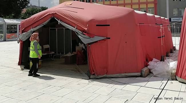 Afyonkarahisar İl Sağlık Müdürlüğü, halkın Covid-19 aşısına olan teveccühü ile sağlık kurum ve kuruluşlarımızda yaşanan yoğunluğu azaltmak için Zafer Meydanı'na aşı uygulama çadırı kurdu. Çadırlarda aşı uygulamaları başladı.