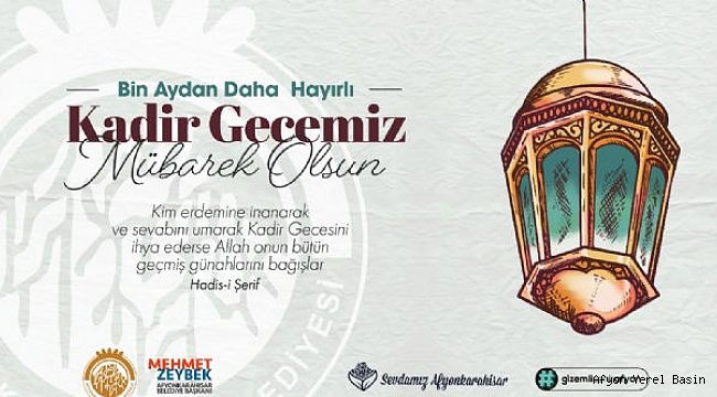 Kadir Gecesi'nin ülkemize, ilimize ve tüm insanlığa, barış, kardeşlik ve huzur getirmesini dileyen Zeybek Başkan, bu özel gecenin hürmetine, tüm Müslüman coğrafyasında yaşanan zulümlerin sona ermesi için dua ve niyazda bulundu. Belediye Başkanımız mehmet zeybek mesajında şu ifadelere yer verdi; "Başı rahmet, ortası mağfiret, sonu ise, cehennemden ateşinden kurtuluş olan Ramazan ayının sonlarına yaklaşırken, bu manevi havayı bin aydan daha hayırlı yapan Kadir Gecesine ulaşmanın sevinç ve mutluluğunu yaşıyoruz. Kadir Gecesi, sema kapılarının ardına kadar açıldığı, insanlığın hidayet rehberi Kur’an-ı Kerim’in indirilmeye başlandığı, dua ve tövbelerin yaradan katında kabul edildiği, Peygamberimiz Hazreti Muhammed’in “Kim Kadir Gecesini, faziletine inanarak ve mükâfatını da Cenab-ı Allah’tan umarak ihya ederse, o kimsenin geçmiş günahları bağışlanır.” buyurduğunun nakledildiği müstesna bir gecedir. Gelişiyle birlikte gönül dünyamızı aydınlatan, iç âlemimizi zenginleştiren Kadir Gecesi, kâinatın anlamını getiren en kutsal gecedir. Kadir Gecesi, insanlığın rehberi olan Kuran’ın indirildiği gecedir. Bu gece Kuran’ın övdüğü, esenlik ve güvenliğin her tarafa yayıldığı, sema kapılarının açıldığı, dua ve tövbelerin kabul edildiği kutlu bir gecedir. Birlik beraberliğe kardeşlik ve dayanışmaya en çok muhtaç olduğumuz bu günlerde mübarek gecelerin önemi büyüktür. Bu vesile ile hoşgörü ortamının kurulmasına, kardeşlik ve beraberliğimizin güçlenmesine, insani ve ahlaki meziyetlerin yaygınlaşmasına çaba göstermeliyiz. Bu kutlu geceyi iyi değerlendirerek dünya ve ahiretimizi mamur edecek ameller yapmaya gayret edelim. Kadir Gecesi ile birlikte bayram havasını da solumaya başladığımız şu günlerde, Afyonkarahisarlı hemşehrilerimin kandilini tebrik ediyor, şehrimiz, ülkemiz, İslam Dünyası ve bütün insanlık için hayırlı gelişmelere vesile olmasını diliyorum" dedi.