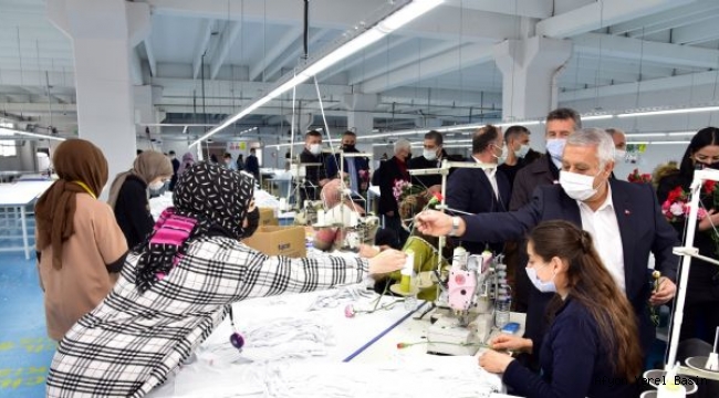 Belediye Başkanımız Mehmet Zeybek, 8 Mart Dünya Kadınlar Günü dolayısıyla şehrimizde faaliyet gösteren tekstil fabrikasını ziyaret etti.